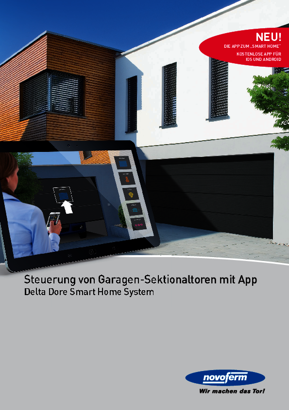 Aplikace pro garážová vrata od společnosti Novoferm je dokonalým pomocníkem pro soukromé domy i firmy. Aplikace se rychle instaluje a snadno používá. Garážová vrata můžete ovládat a získávat informace o stavu garáže pouhým dotykem prstu. Můžete vytvářet různé scénáře pro vaše zabezpečení a optimální větrání garáže. Pomocí doplňkových komponent můžete prostřednictvím aplikace ovládat také termostaty, rolety, osvětlení, bezpečnostní kamery nebo poplachové sirény.