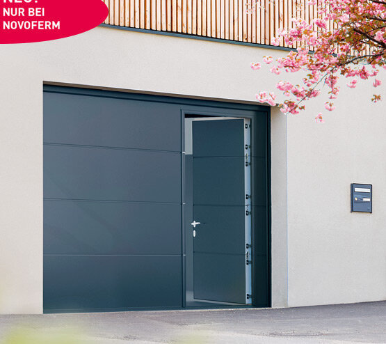 Úhledná integrace: Vizuálně dveře velmi elegantně zapadají do garážových vrat.Žádné sekání: Při dodatečné montáži garážových vrat do zdi vzniká spousta nečistot. Obecně platí, že garážová vrata s dveřmi přirozeně znamenají méně stavebních prací.