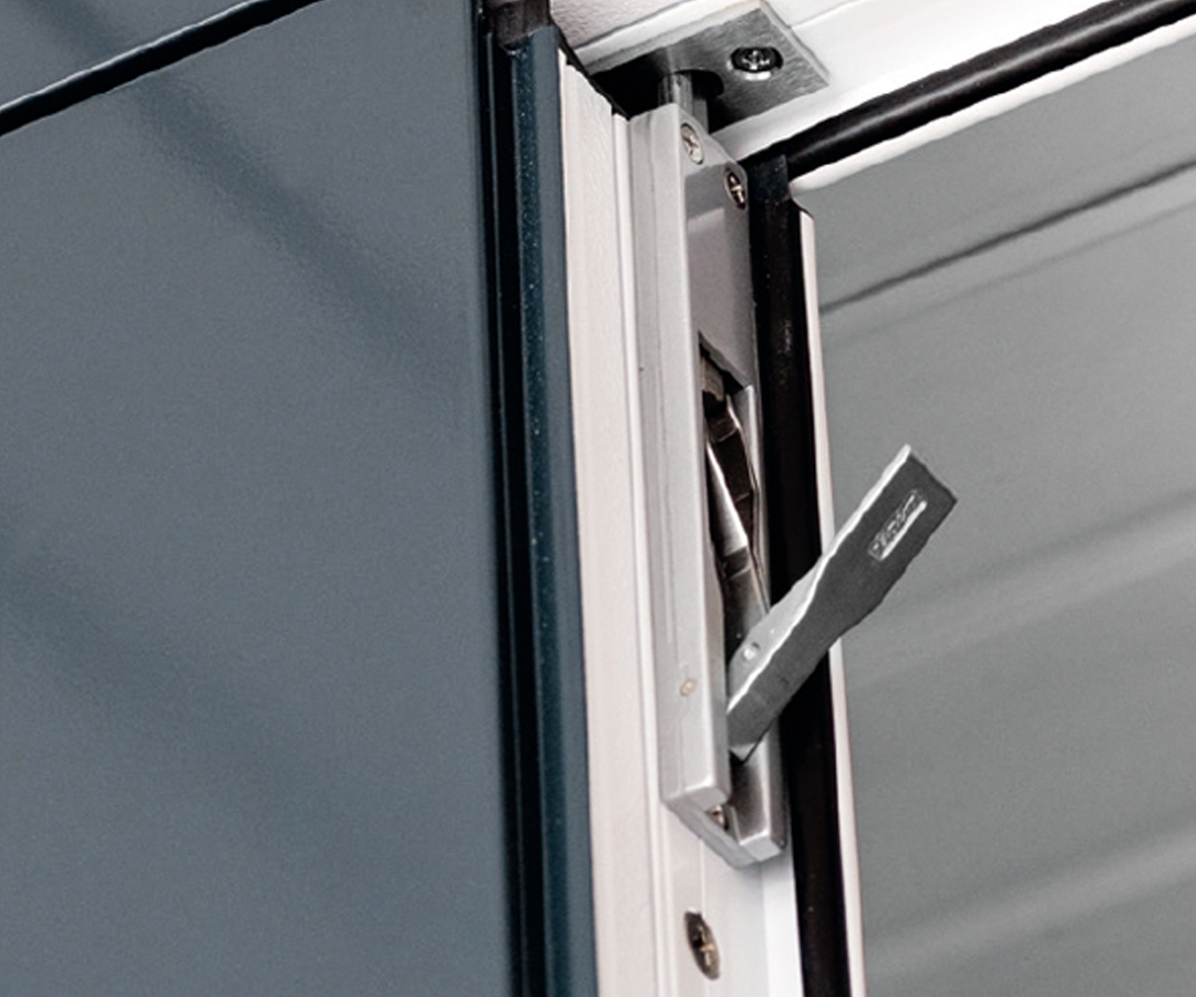 Křídlová garážová vrata Novoferm mohou být vybavena trojitým uzamykacím systémem s ochranou pantů proti vloupání. Ten poskytuje dodatečné zabezpečení a zajišťuje, že vrata nelze vypáčit nebo odsunout.