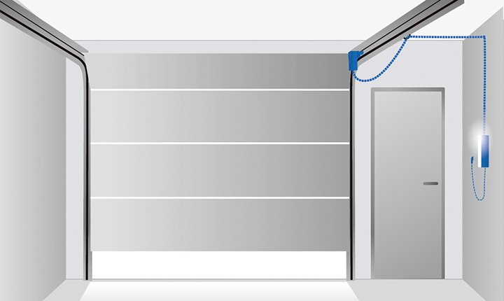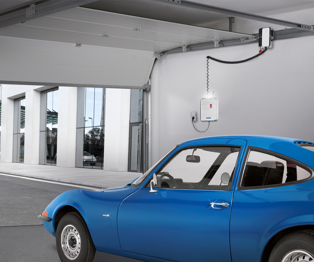 Integrované tlačítko Umístění ovládací jednotky na pravé nebo levé stěně umožňuje snadné otevírání a zavírání garáže pomocí integrovaného tlačítka - ve srovnání s běžnými stropními pohony. Při ovládání z garáže nejsou u tohoto řešení nutná další tlačítka.