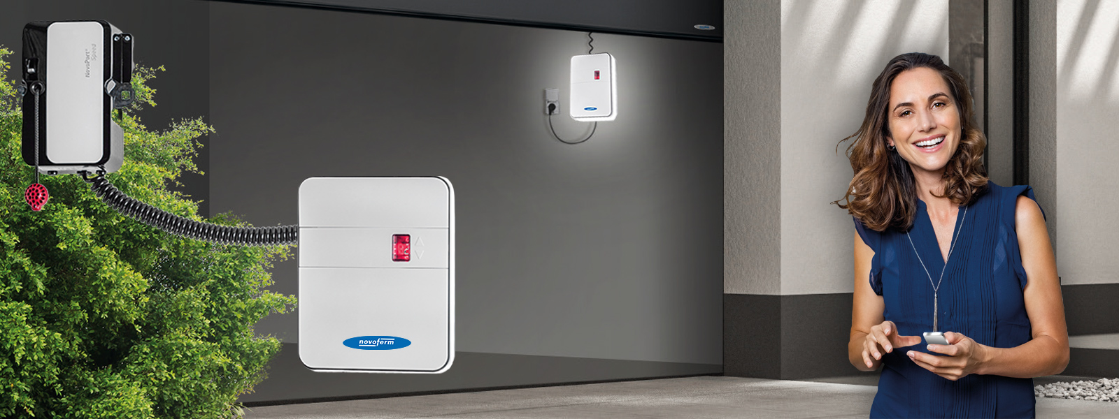 NovoPort Speed / kompatibilní se SmartHome Elektrický pohon garážových vrat NovoPort® Speed je k dispozici pouze u společnosti Novoferm a byl vyvinut speciálně pro sekční garážová vrata. Pohon nabízí moderní design, energeticky úsporné LED osvětlení, je kompatibilní s technologií SmartHome pro ovládání prostřednictvím aplikace a má mnoho dalších praktických funkcí.