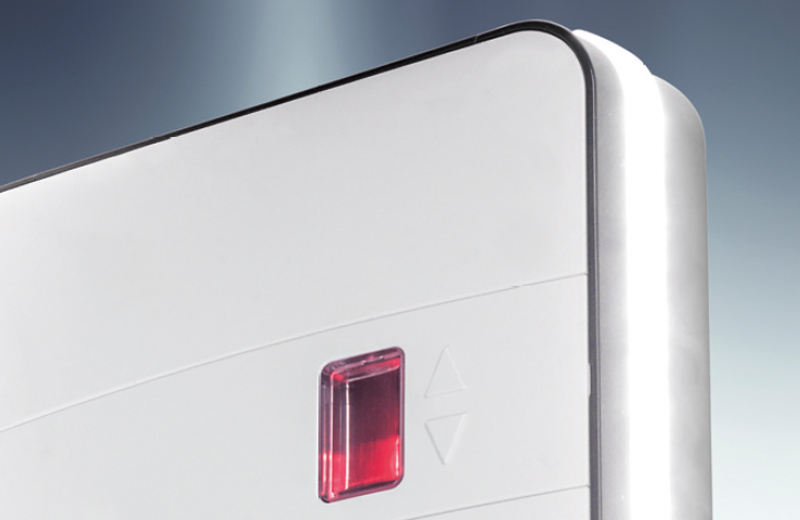 - Zobrazení stavu vrat na ručním vysílači prostřednictvím LED (červená, žlutá, zelená) nebo prostřednictvím aplikace