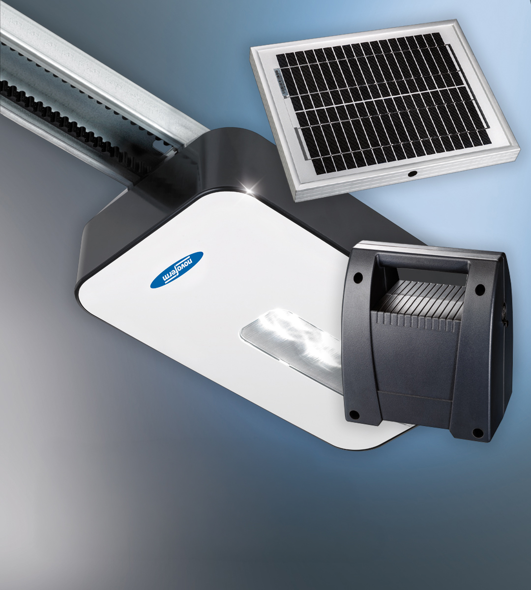 Novomatic 423 Accu je flexibilní řešení pro garáže bez elektrické přípojky, a proto je ideální pro dodatečnou automatizaci. Jako dodavatel energie slouží akumulátor, který lze rozšířit o solární modul. Pomocí regulátoru nabíjení lze pohon připojit i k elektrické síti, aniž by došlo k poškození akumulátoru. V případě výpadku proudu pohon otevírá a zavírá jako obvykle, dokud je akumulátor nabitý.