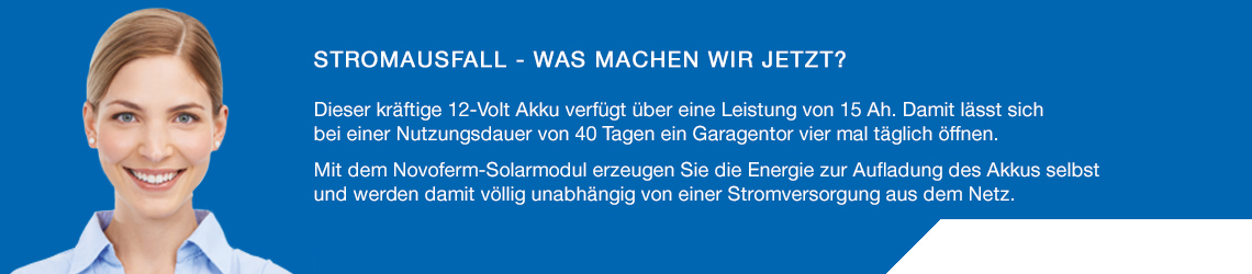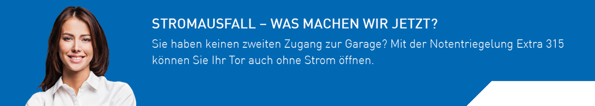 Snadné otevírání dveří i při výpadku proudu! Díky nouzovému otevírání Novoferm "Extra 315" můžete garážová vrata bez problémů otevřít i v případě výpadku proudu.