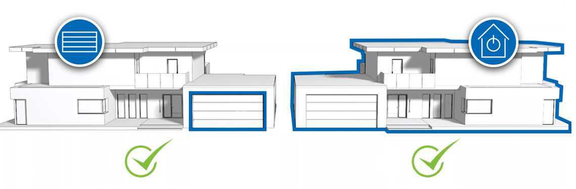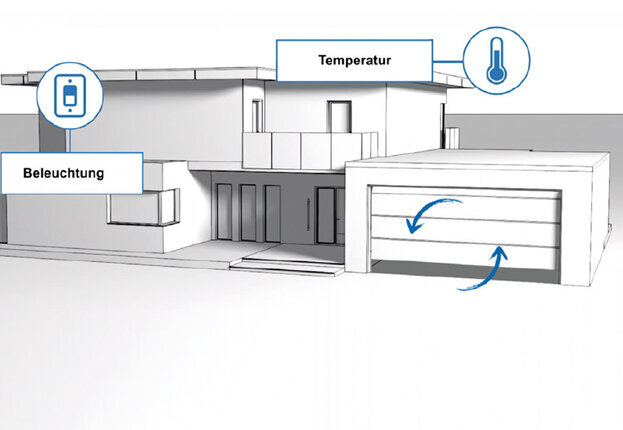 Kromě ovládání garážových vrat Novoferm můžete pomocí příslušných kompatibilních komponent SmartHome, které jsou k dispozici samostatně, ovládat také osvětlení a stínění, zabezpečení a monitorování a přizpůsobit vytápění a klima počasí a prostředí.
