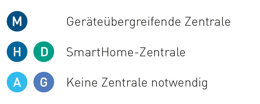 - Řídicí centrum SmartHome od příslušného kompatibilního poskytovatele (Homematic IP, Delta Dore nebo Mediola). Pro Google Home a Amazon Alexa není řídicí centrum SmartHome vyžadováno.