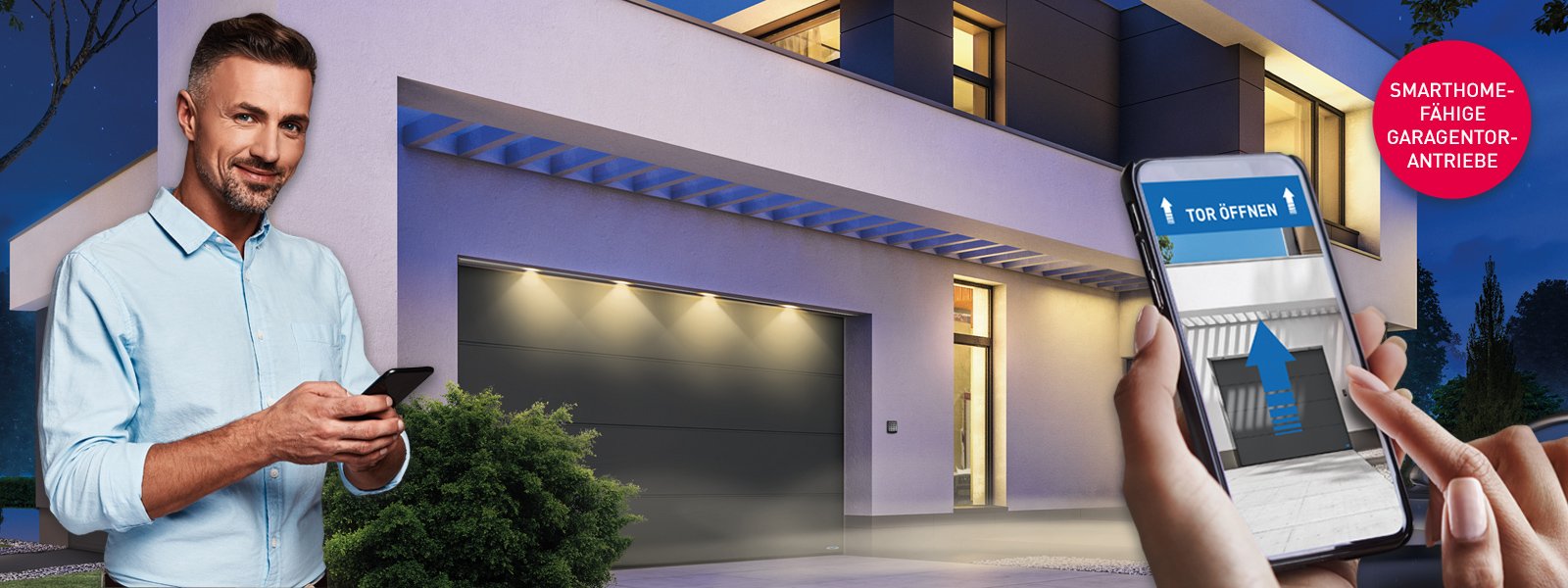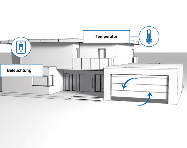 Sekční garážová vrata lze vždy spolehlivě a transparentně ovládat pomocí chytrého telefonu, tabletu nebo hlasového asistenta. Uživatelé mohou také kdykoli a bez ohledu na svou polohu vyvolat stav vrat, tj. zda jsou vrata otevřená nebo zavřená.