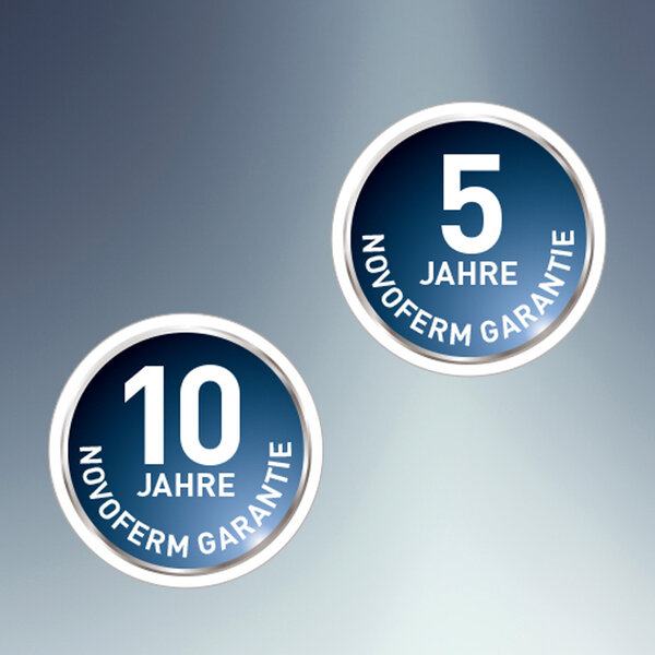 Tímto způsobem garantujeme kvalitu: 10 let na vchodové dveře z oceli, 5 let na vchodové dveře z masivního dřeva. To vše v kombinaci s příkladným servisem vašeho prodejce Novoferm. Podrobné záruční podmínky najdete nawww.novoferm.de/garantiebestimmungen