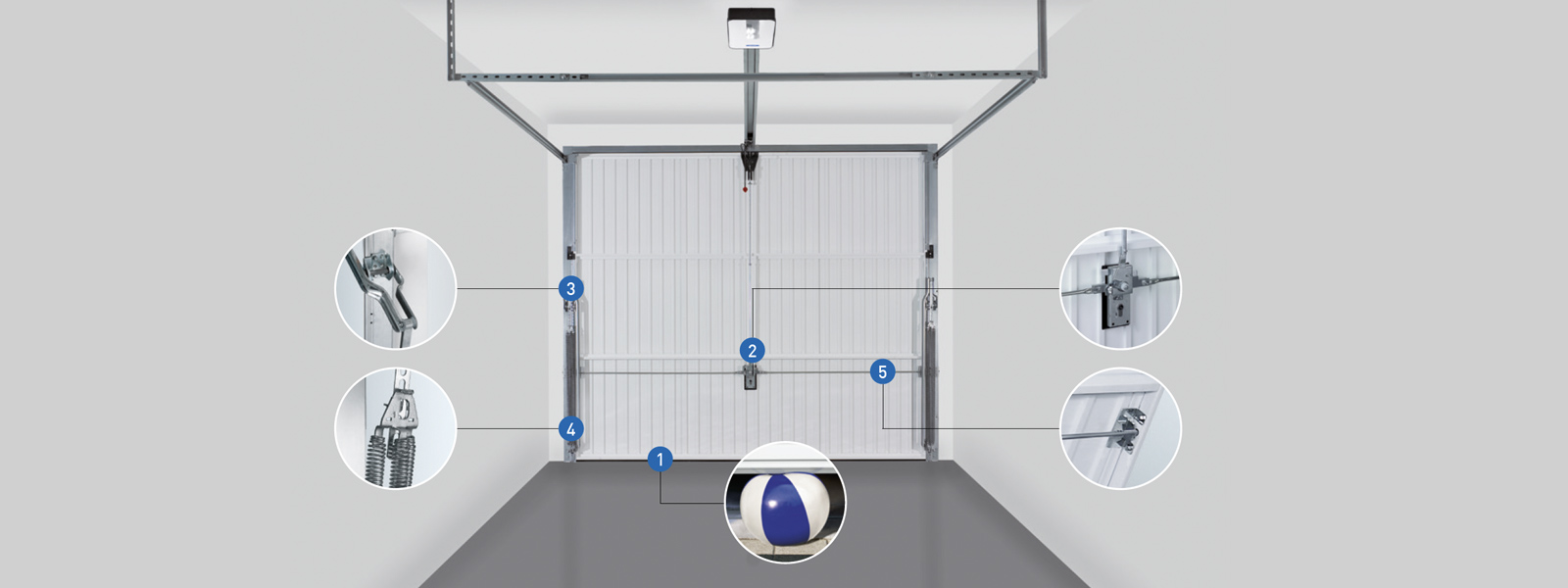 Vrata Novoferm s pohonem jsou vybavena systémem automatického vypnutí, který sám sebe kontroluje. Jakmile vrata při zavírání narazí na překážku, bez ohledu na to, zda se jedná o předmět nebo osobu, zastaví se a při sebemenším odporu se okamžitě otevřou.