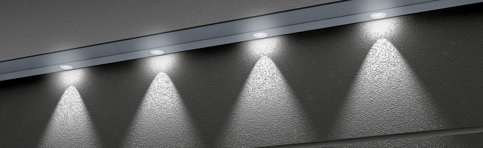 Zahřejí vaše garážová vrata jasným světlem, ale vyžadují velmi málo energie. Osvětlovací jednotka LED nad garážovými vraty dotváří atmosféru vaší fasády. Při výšce pouhé 2 cm a šířce 4 cm zabírá osvětlovací souprava pod nadpražím garáže tak málo místa, že je zachována téměř celá světlá výška.