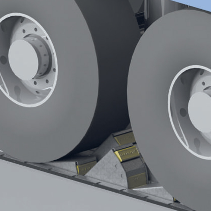 Podložky pod kola zajišťují, aby nákladní vozidla zůstala přesně tam, kde jsou naložena. Standardní klíny na kola nákladních vozidel však pomáhají jen ve velmi omezené míře.