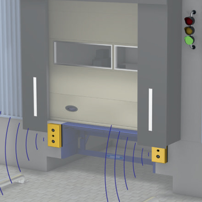 | - Nárazník z vysoce výkonného plastu v signální žluté barvě | - Měření vzdálenosti (budova nákladního vozidla) se zobrazením prostřednictvím vnějšího světelného signalizačního zařízení |