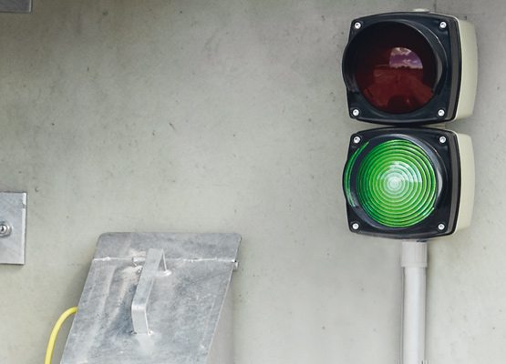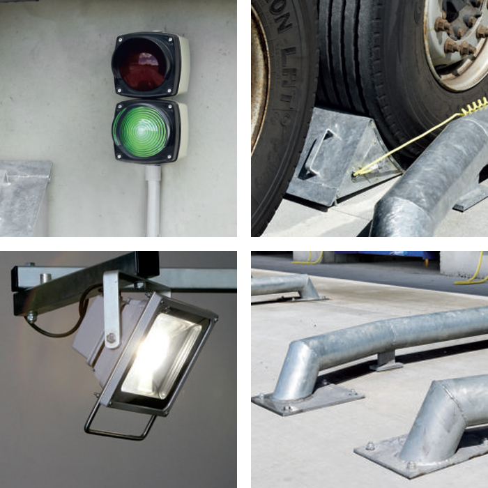 Je smysluplné spojit klíny kol se světelným signalizačním systémem, který poskytuje řidiči nákladního vozidla i pracovníkům nakládacího mostu informace o aktuálním stavu.