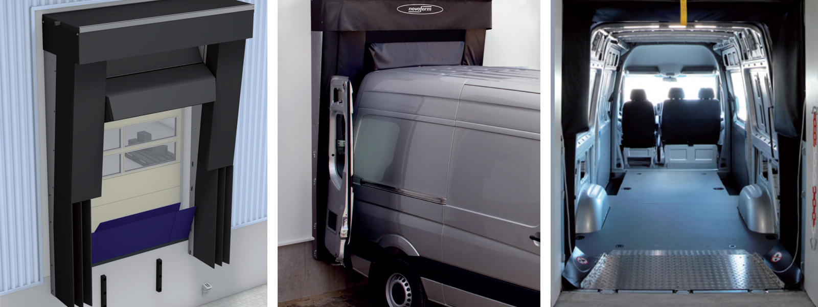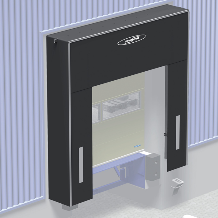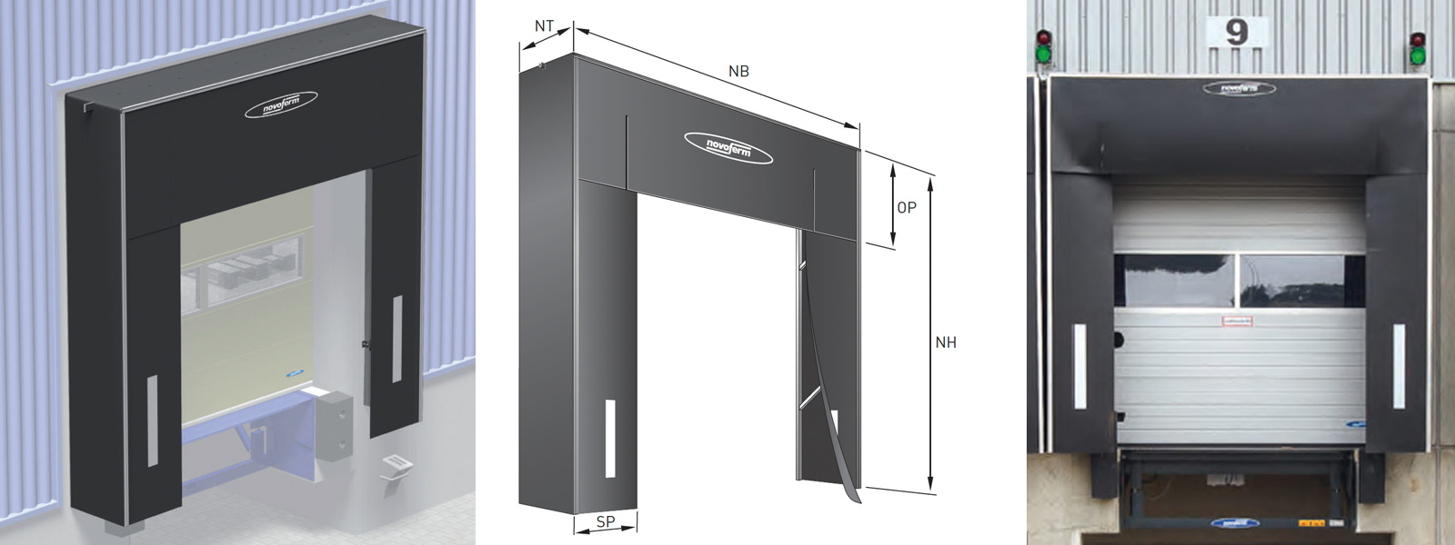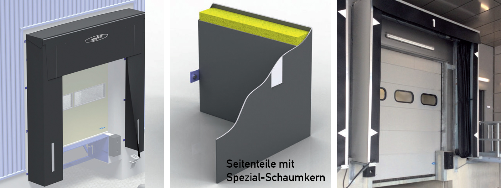 TĚSNĚNÍ DVEŘÍSE SPECIÁLNÍM PĚNOVÝM JÁDREM Dveřní těsnění Novoferm s přední zasouvací částí chrání před průvanem, deštěm a větrem. Vytvářejí dokonalé těsnění mezi nákladním vozem a budovou a chrání před ztrátou energie a možným poškozením nákladu. V bočních panelech nejsou žádná ramena, články, závěsy ani táhla - dokové přístřešky jsou prakticky "nezničitelné".
