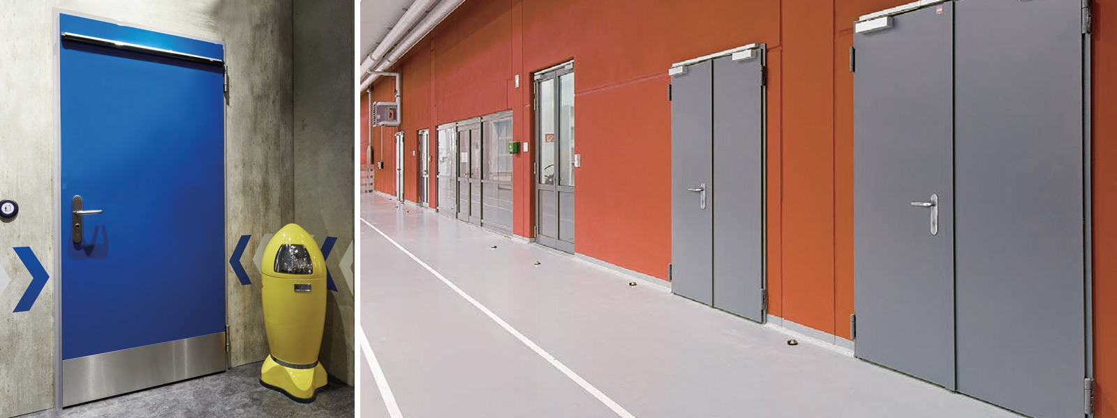 Příklady použití, při nichž je bezpečnost obzvláště důležitá, a to i v kombinaci s dalšími ochrannými funkcemi (ochrana proti požáru, kouři nebo hluku):