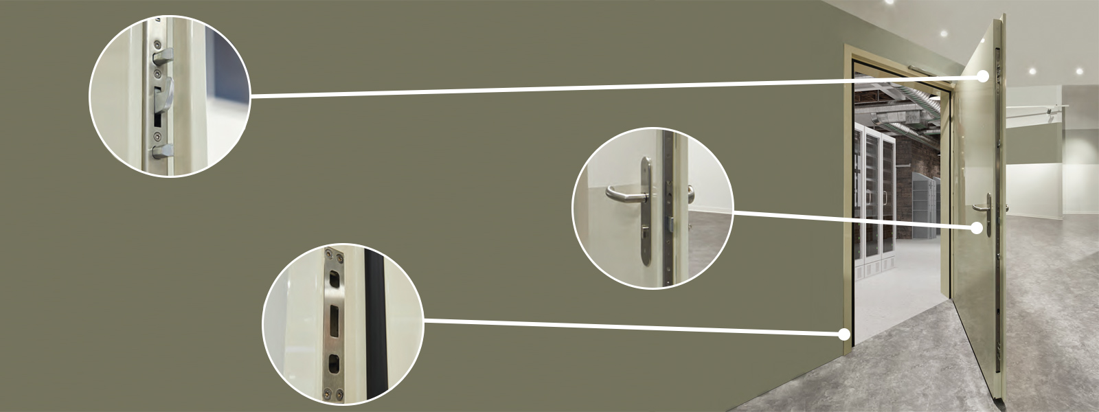 Nabízíme ocelové bezpečnostní dveře s testovaným zabezpečením podle RC 4 (WK 4) v provedení se silnoufalcovou lištou pro použití například v serverovnách.