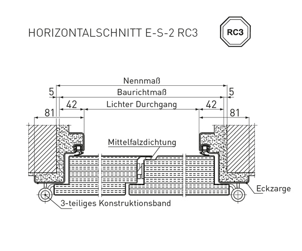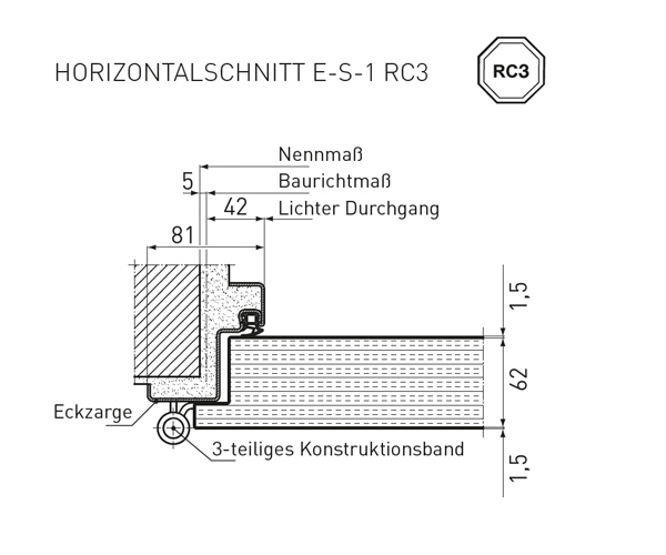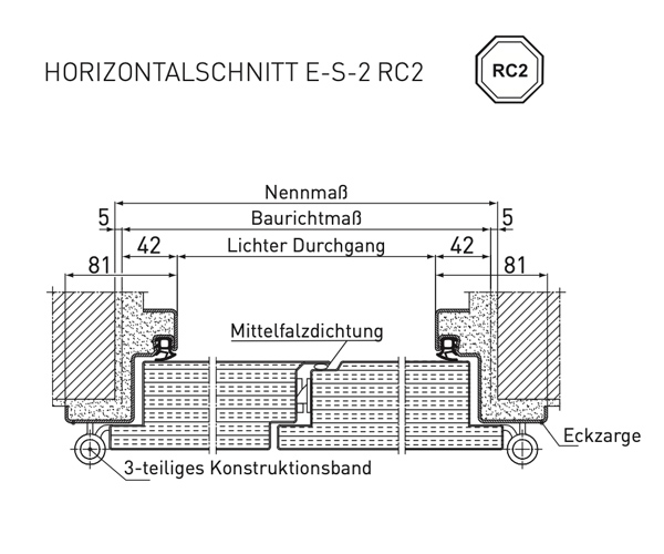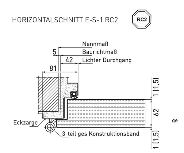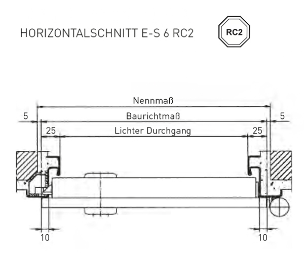 NovoSecur® E-S 6 Dveře 1 křídlo | Tlustý falc 1,0 | - | - | RC 2 (WK 2) | 33 dB1) 29 dB3) 34 dB2) | 1,7 | min. 625 x 1750 max. 1250 x 2500 |