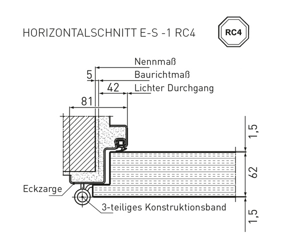 Premio E-S-1 RC4 Dveře 1 v jedné rovině | Silný falc 1,5 | El2 30 El2 60 El2 90 | - | RC 4 (WK 4) | 38 dB1) 46 dB2) 39 dB3) | 1,8 | min. 625 x 1750 max. 1375 x 2500 |