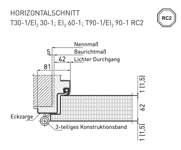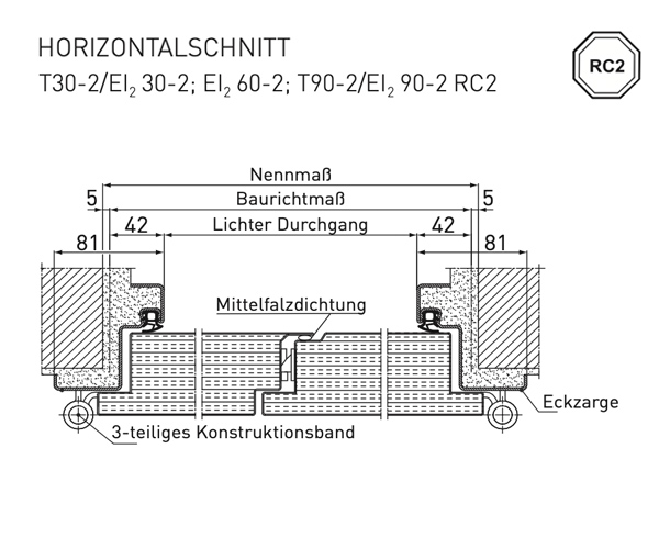 Třída odolnosti Typ | RC2 T/EI2 30-1 / 60-1 / 90-1 | RC2 T/EI2 30-2 / 60-2 / 90-2 | |||