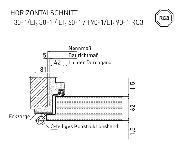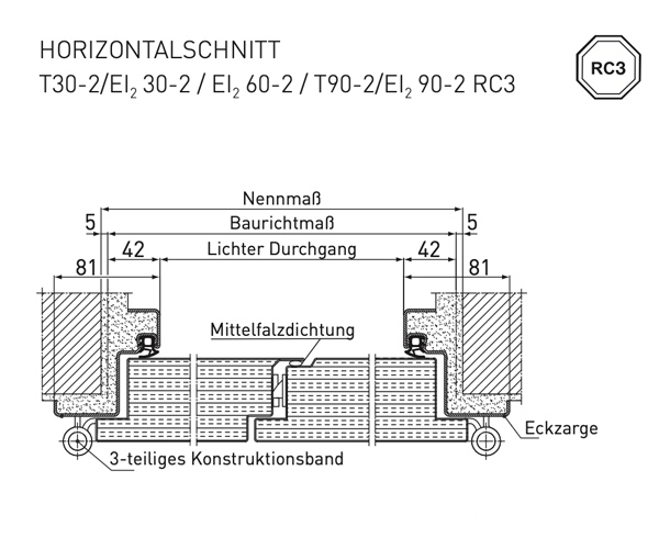 Třída odolnosti Typ | RC3 T/EI2 30-1 / 60-1 / 90-1 | RC3 T/EI2 30-2 / 60-2 / 90-2 | |||