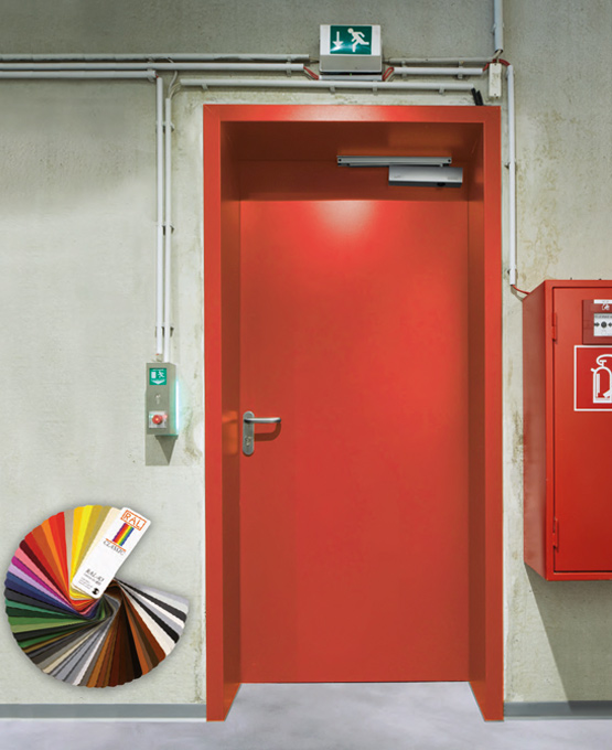 | Vzhled | Standardně: dveřní křídlo/rám pozinkované a opatřené základním nátěrem v bílé barvě podobné RAL 9016, na přání také v barvě RAL dle vašeho výběru. | ||||