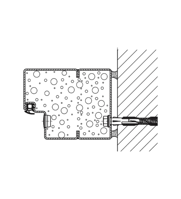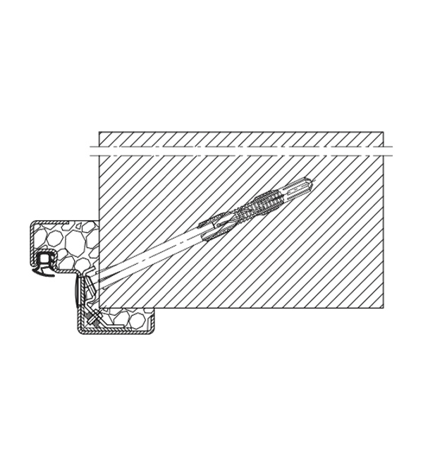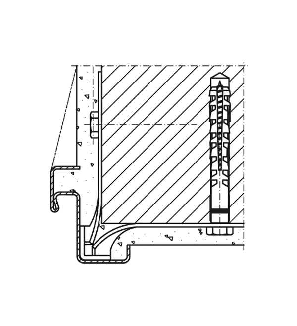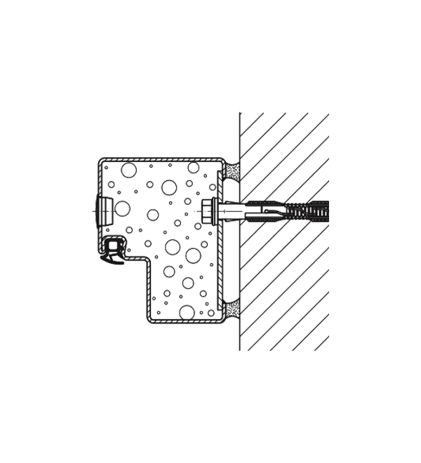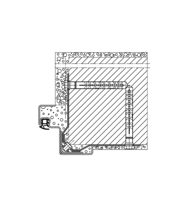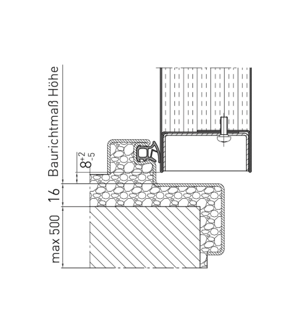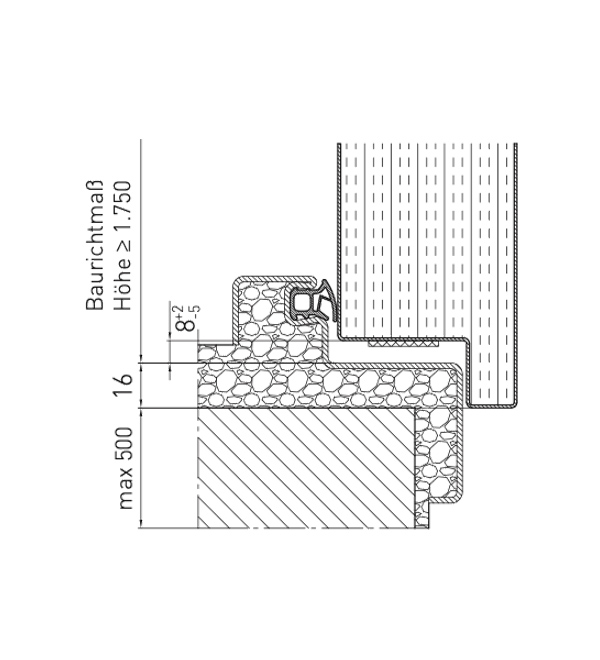 Připojení kestěně z pórobetonu (přivaření) Odpovídající minimální tloušťky stěn pro schválenou montáž bezpečnostních dveří do stěn z pórobetonu naleznete na příslušných technických stránkách hlavního výrobku.