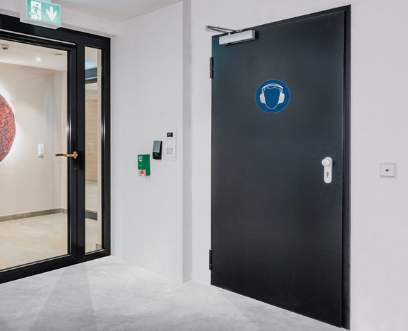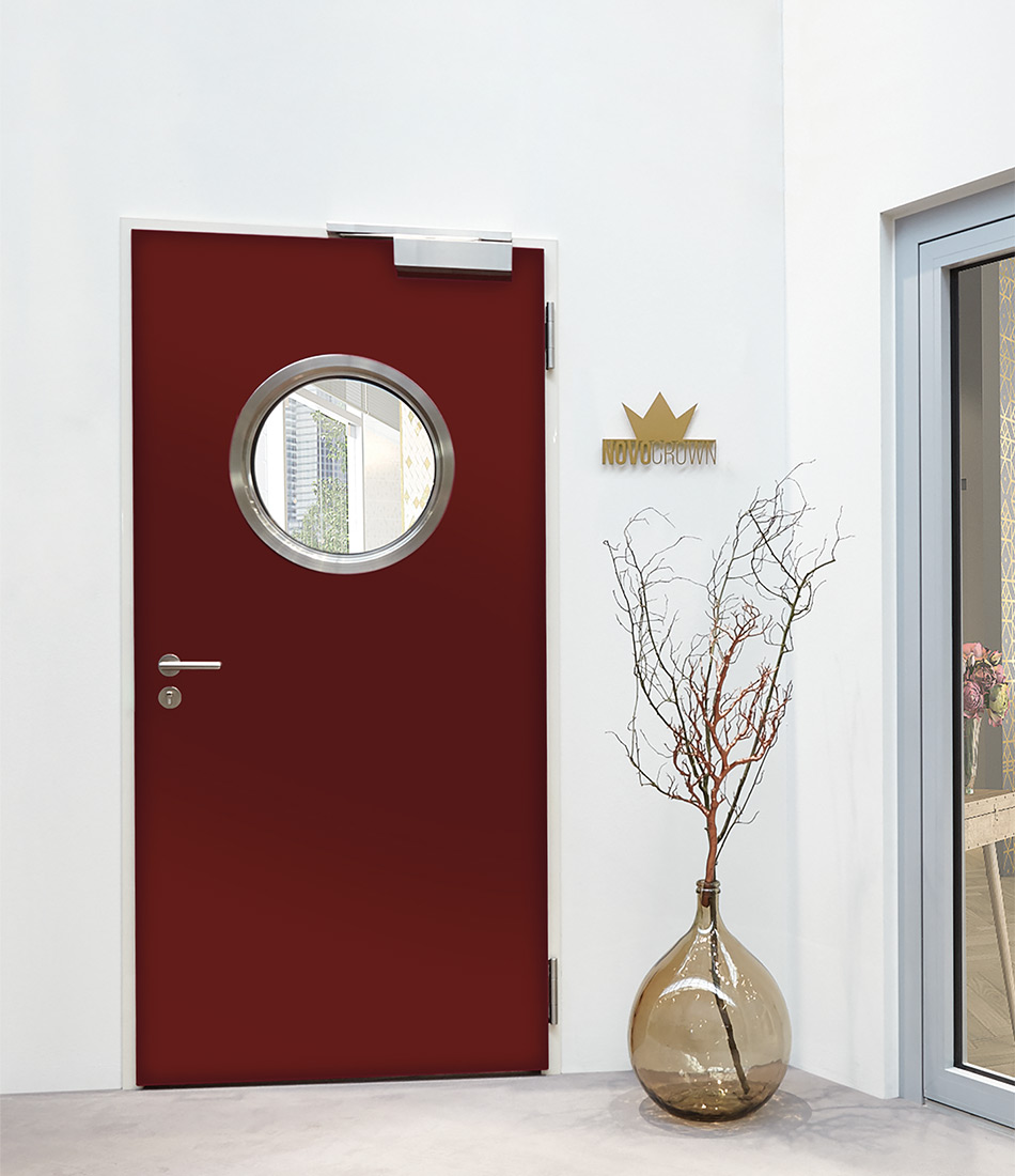 Vysoce funkční ocelové dveře NovoPorta Premio s vysoce kvalitním silným falcem jsou k dispozici jako protipožární (ažEI2 90), kouřotěsné, bezpečnostní (až RC 4), zvukově izolační (až RW = 53 dB), víceúčelové a dokonce i neprůstřelné (FB 4, VPAM 6) - pro jednotný vzhled dveří v celém objektu.