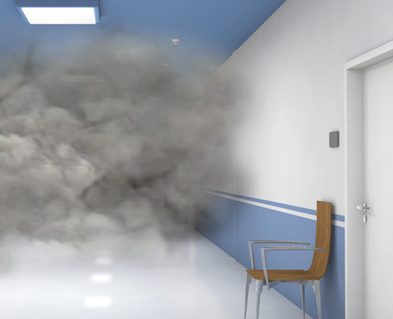 Pokud při požárech dochází ke ztrátám na životech, je to obvykle důsledek silného zakouření. Toxické zplodiny mnohonásobně zvyšují riziko udušení ve srovnání s hořením. Obsah oxidu uhelnatého pouhých 0,8 % ve vzduchu v místnosti může vést k náhlé smrti. Proto je důležité včas zadržet kouř, zabránit jeho šíření chodbami nebo schodišti a utěsnit místnosti tak, aby byly kouřotěsné.