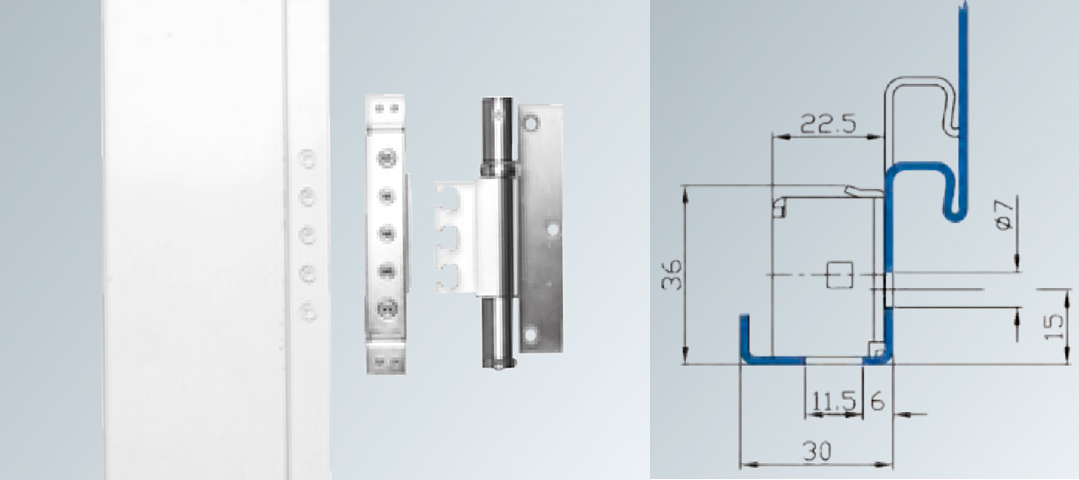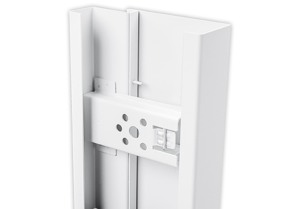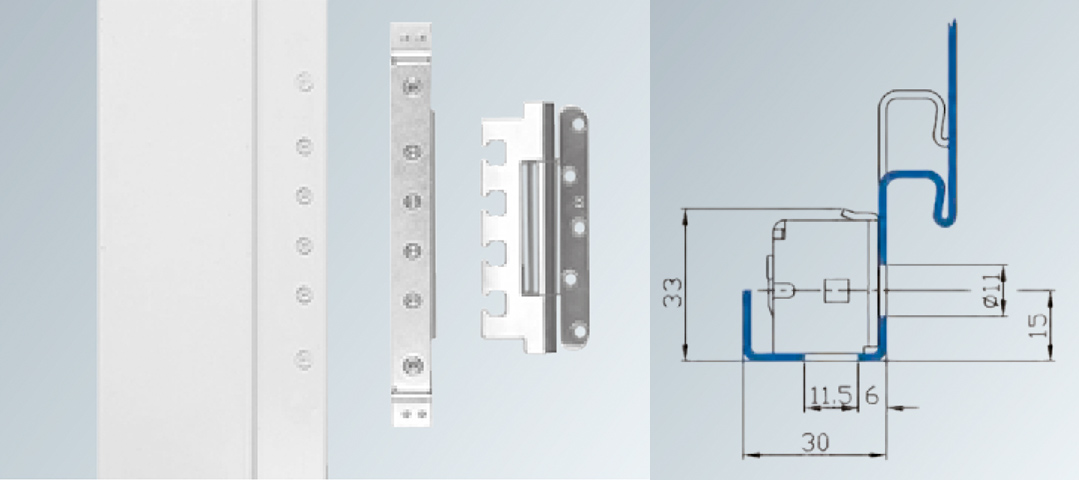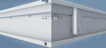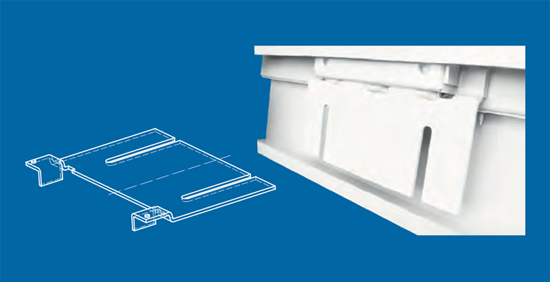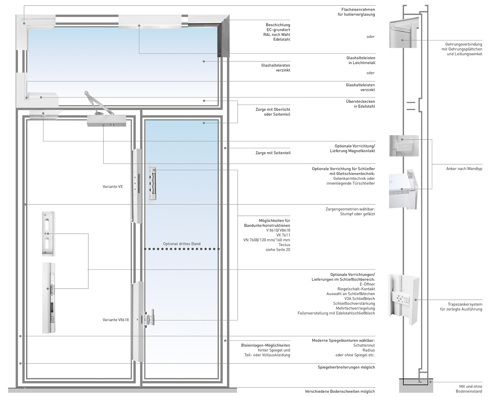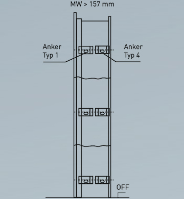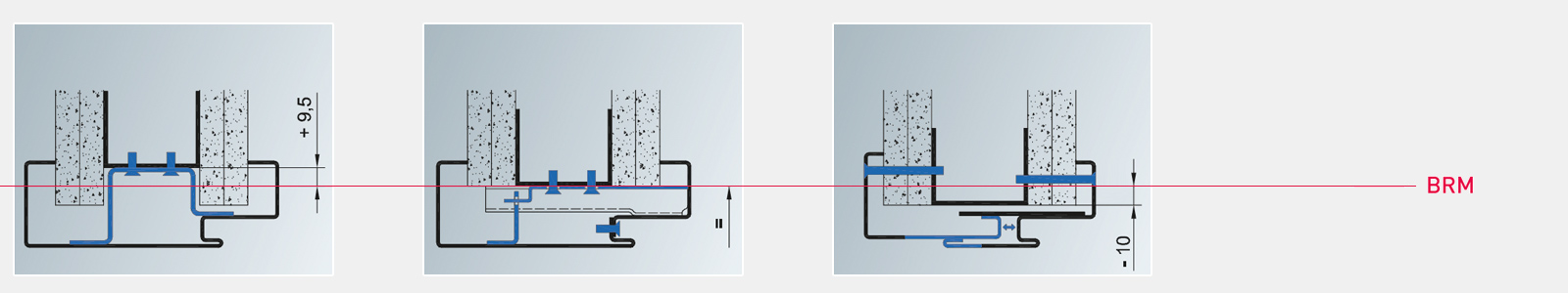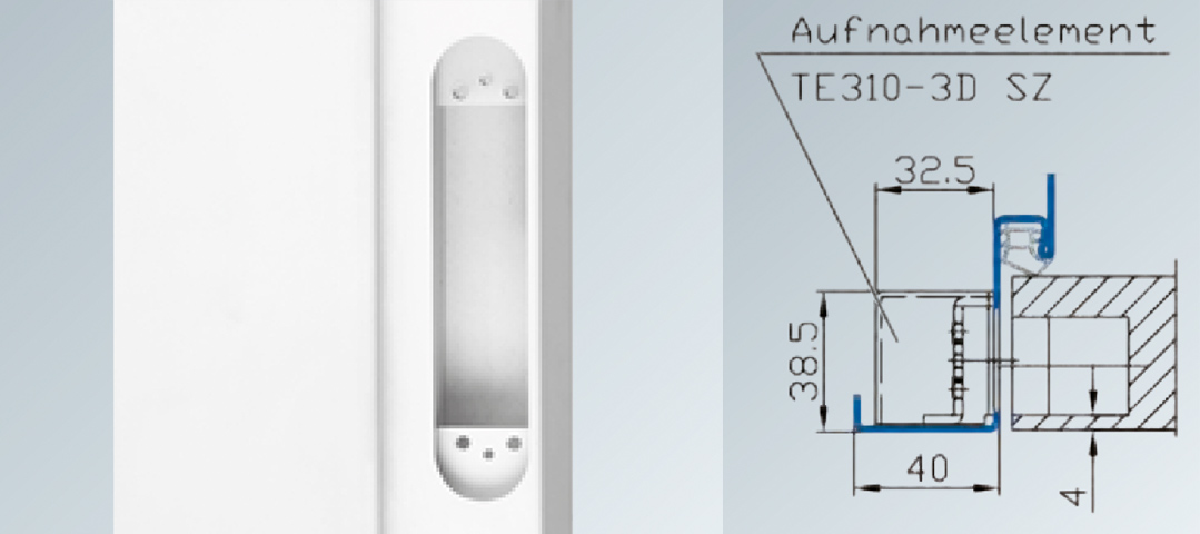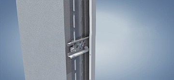 V moderní výstavbě nemovitostí se neustále zvyšuje počet funkčních dveří s vysokou hmotností dveřního křídla. Zároveň se vnitřní příčky staví co nejtenčí. Velmi oblíbenými se staly tenké příčky se 100 mm nebo 125 mm čepovými rámy. Pro zajištění dlouhodobé funkčnosti dveřních prvků je obzvláště důležité, aby se zatížení dveřního křídla optimálně přenášelo na spodní konstrukci stěny. Právě to zajišťuje nová montážní a výztužná deska pro podkonstrukci závěsů systému VX, která je součástí dodávky z výroby. Tato volitelná speciální výztužná deska je přivařena přímo k podkonstrukci závěsu a poté pevně spojena s UA profilem stěny s rámem čepu.