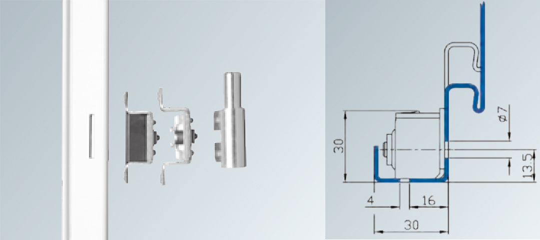 Vícebodový zámek 15 x 20 mm, otvor s drážkou (Pozor: při objednávce uveďte typ)- Variabilní vybrání v podlaze