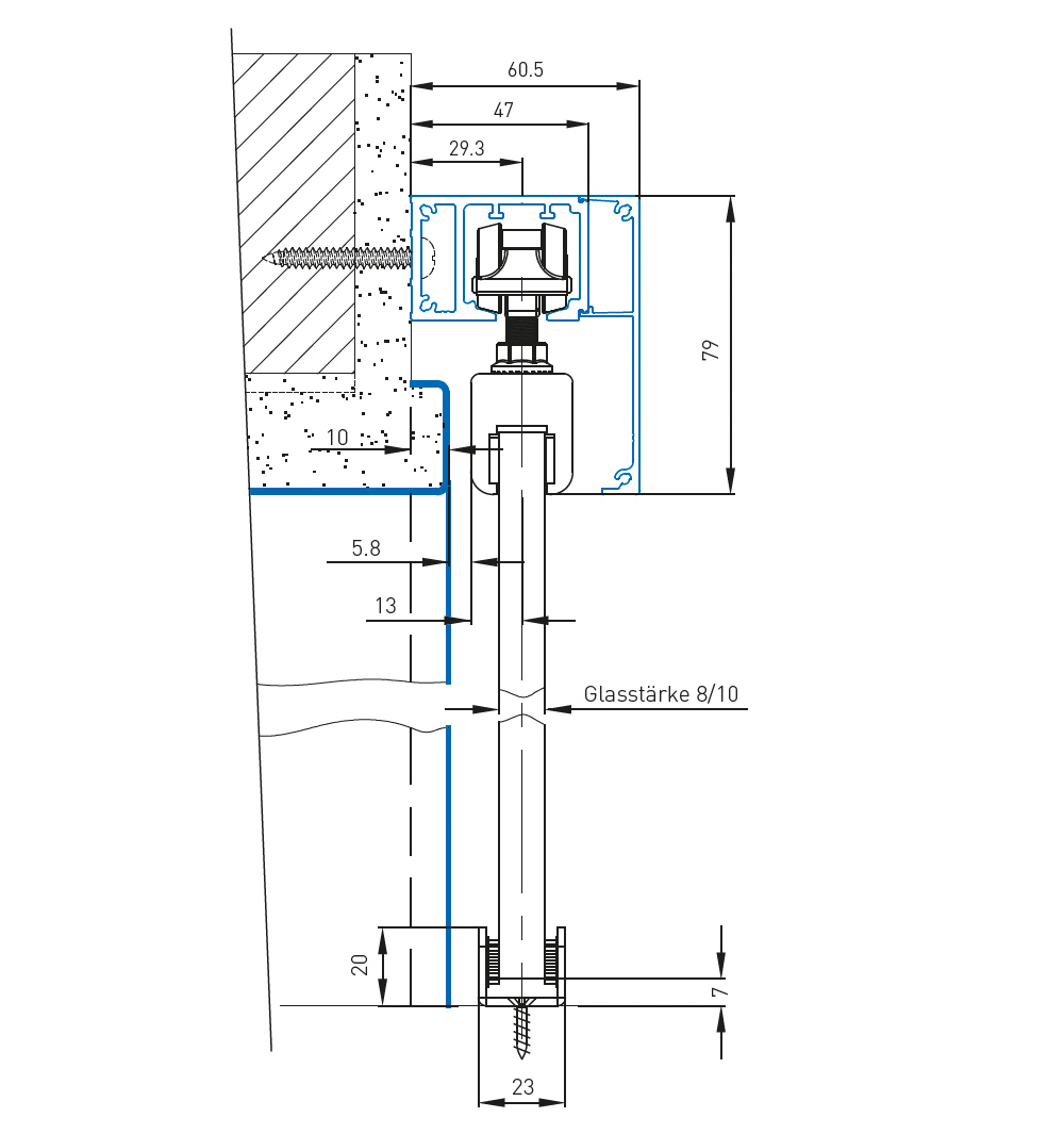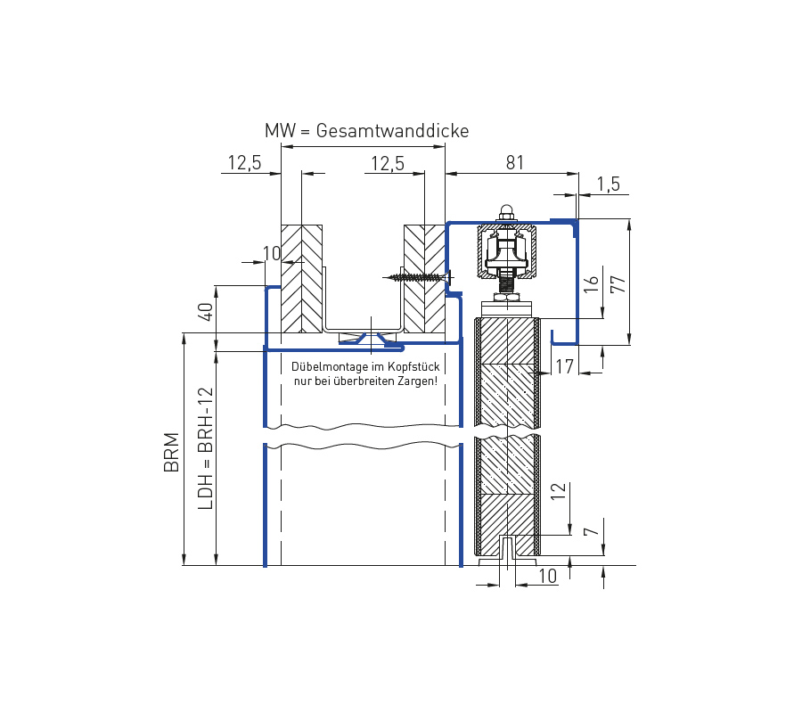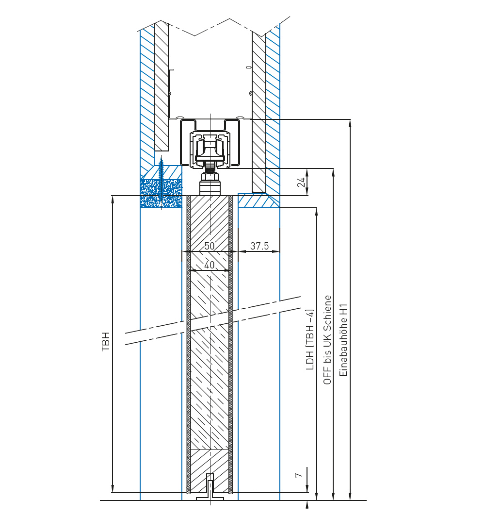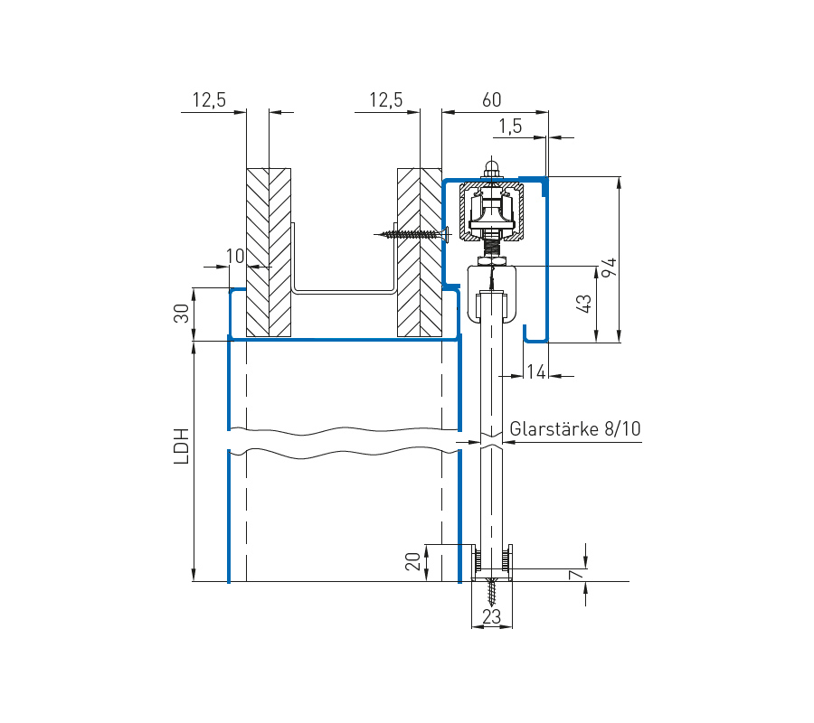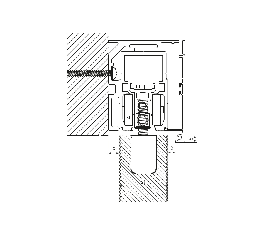 - Včetně kompletního montážního příslušenství pro montáž dveřního křídla na kolejnici, např. upínacího kování pro skleněné dveře.