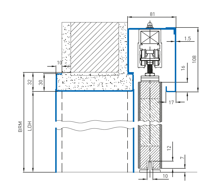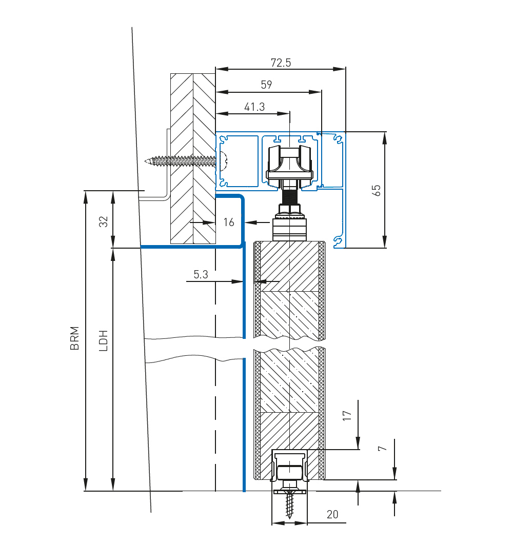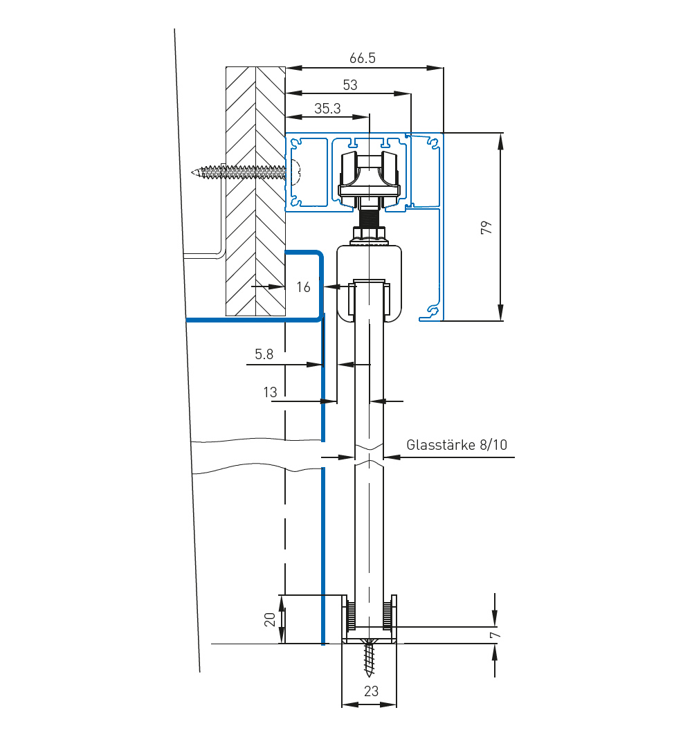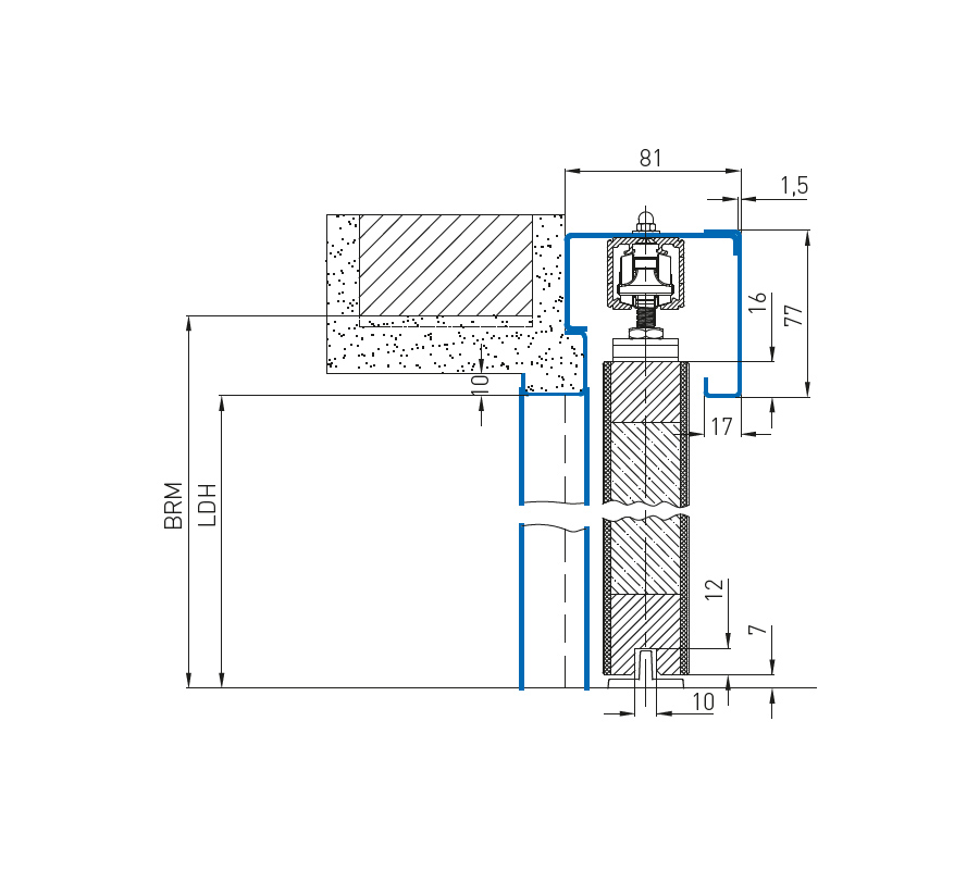 - Včetně kompletního montážního příslušenství pro montáž dveřního křídla na kolejnici, např. upínacího kování pro skleněné dveře.