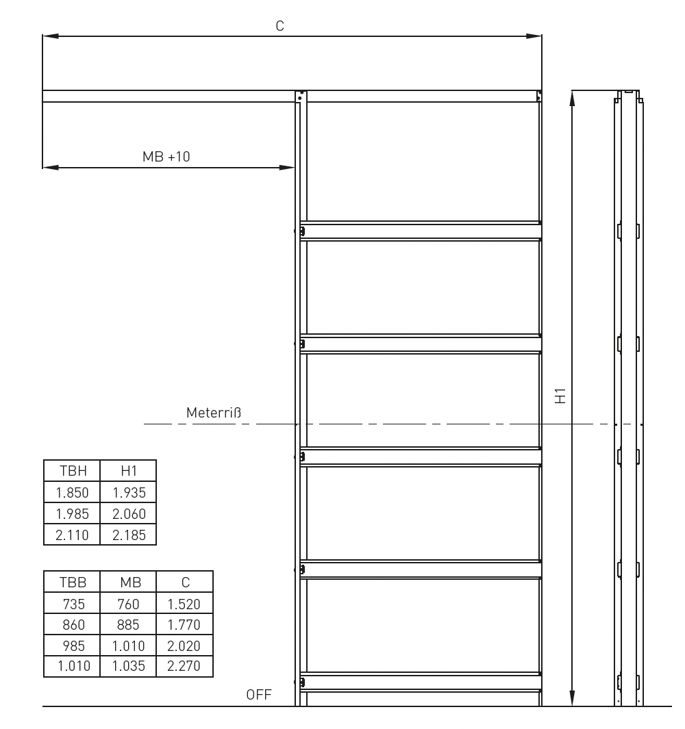 Šířka 610 / 735 / 860 / 985 / 1 110 / 1 235 mm Výška1 985 / 2 110 / 2 235 mmze skladu