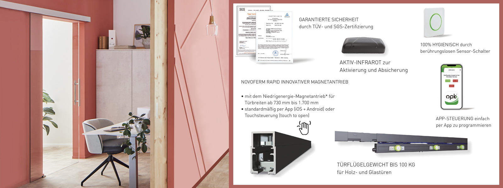 Řešení posuvných dveří NovoSlide Wall zaujme optimální jednoduchostí použití a atraktivním designem.