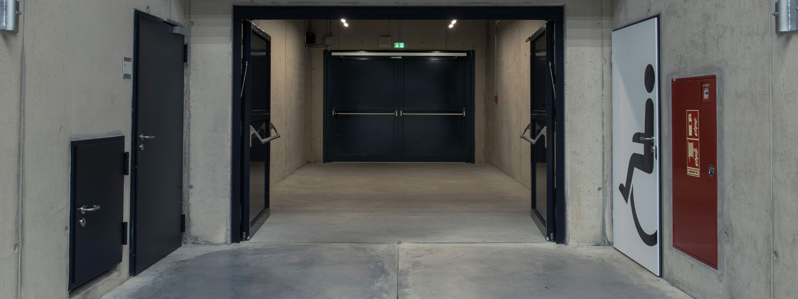 Stěnové klapky Novoferm NovoPorta Premio s vysoce kvalitním silným falcem jsou k dispozici ve třídách požární ochrany EI2 30 a EI2 90, v bezpečnostním, víceúčelovém a zvukově izolačním provedení - v závislosti na provedení - pro vnitřní i venkovní použití.