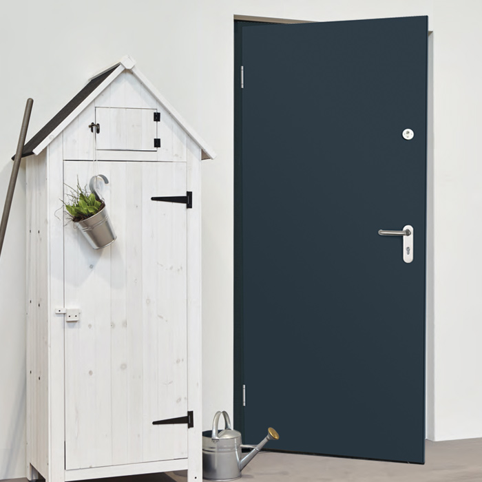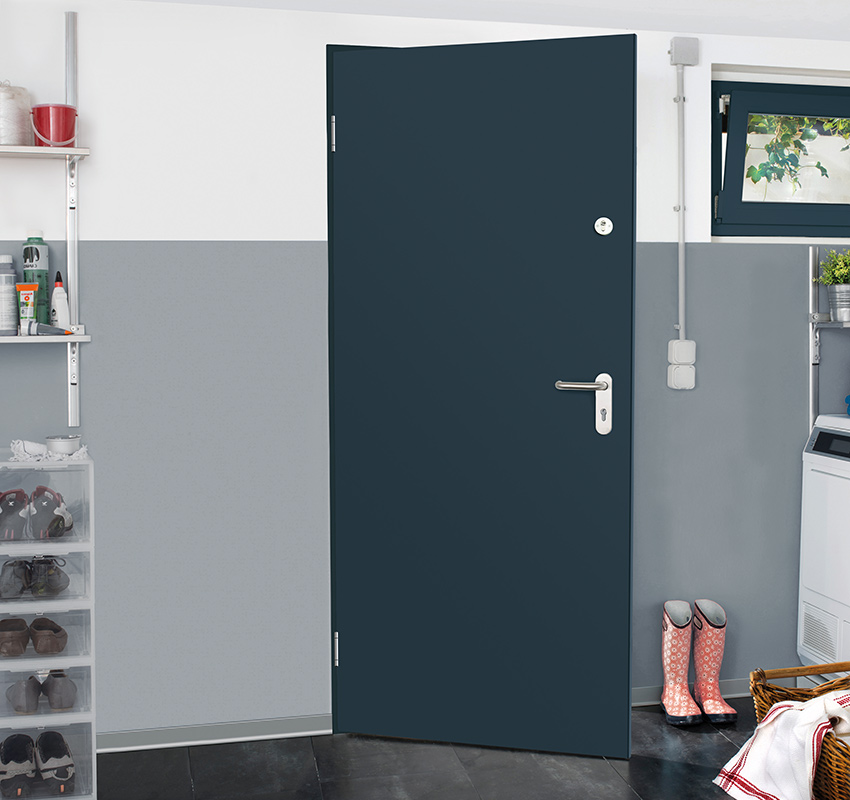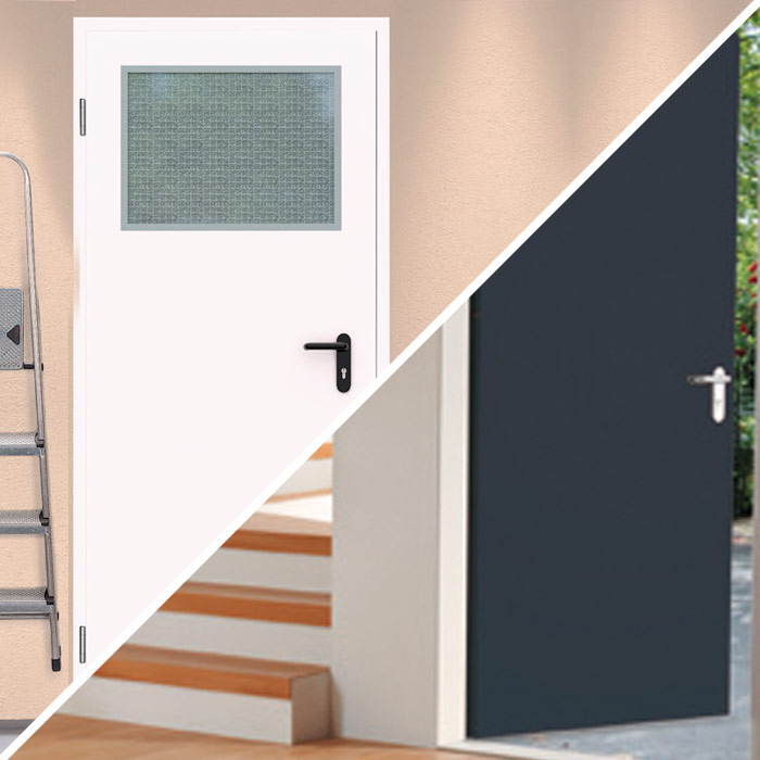 - Víceúčelové ocelové dveře s povrchovou úpravou v čistě bílé barvě a v trendové antracitově šedé barvě.