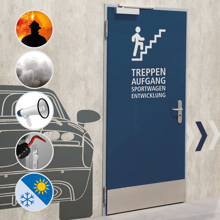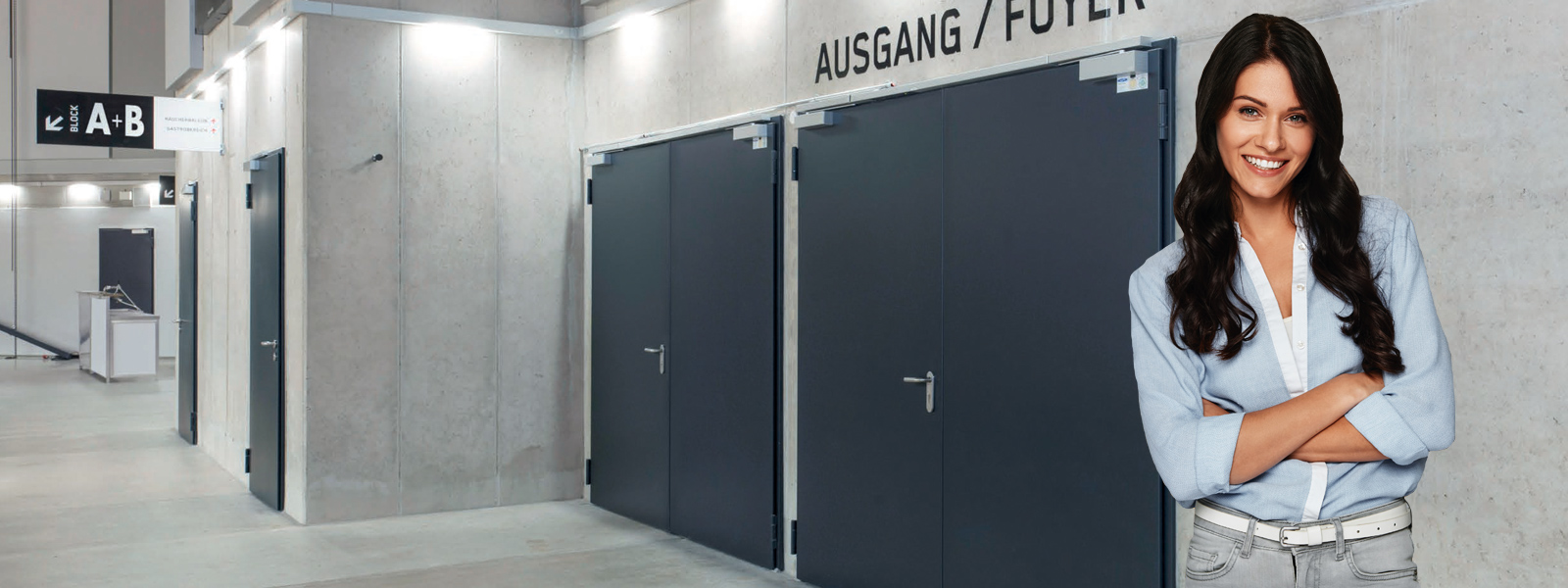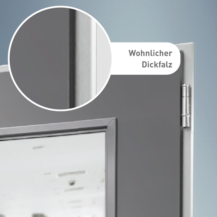 Vysoce funkční ocelové dveře NovoPorta Premio s vysoce kvalitním silným falcem jsou k dispozici jako protipožární (ažEI2 90), kouřotěsné, bezpečnostní (až RC 4), zvukově izolační (až RW = 53 dB), víceúčelové a dokonce i neprůstřelné (FB 4, VPAM 6) - pro jednotný vzhled dveří v celém objektu.