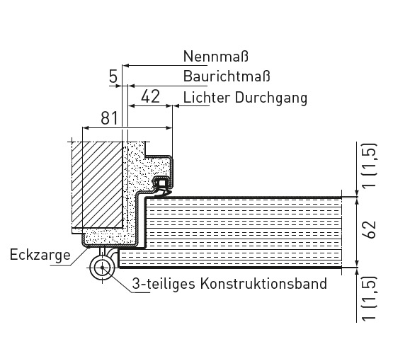 Dveře 1 křídlo | Tlustý falc 1,0 | - | do RC 3 | 39 dB1) 41 dB2) | 1,6 | min. 1500 x 3000 jako typ MZ53-1 až max. 1500 x 3500 | |