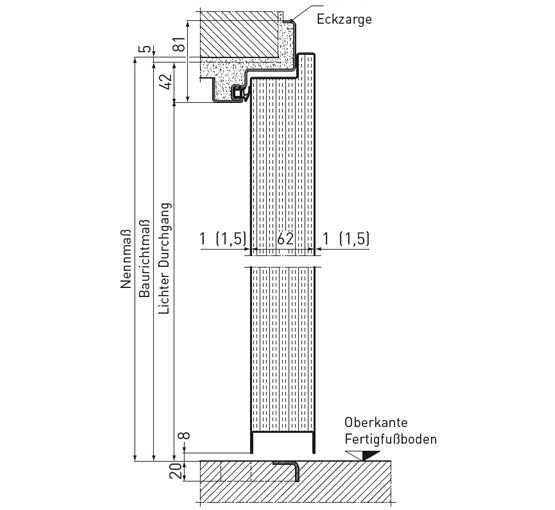 - Ochrana proti kouři podle DIN 18095 do max. velikosti BRM 1 375 x 2 500 mm (LD 1 291 x 2 458 mm) / 2 500 x 2 500 mm (LD 2 416 x 2 458 mm) se spouštěným podlahovým těsněním (RS1/RS1V) nebo kyvným prahem s překryvným těsněním (RS2) a horním dveřním zavíračem (pro dvoukřídlé prvky se dvěma horními dveřními zavírači Geze TS 4000 F nebo dormakaba TS 89 F, jakož i s koordinátorem dveří a pohonem falcu). prvky se dvěma horními dveřními zavírači Geze TS 4000 F nebo dormakaba TS 89 F, jakož i s koordinátorem dveří a vratovým pohonem s aretací nahoru).