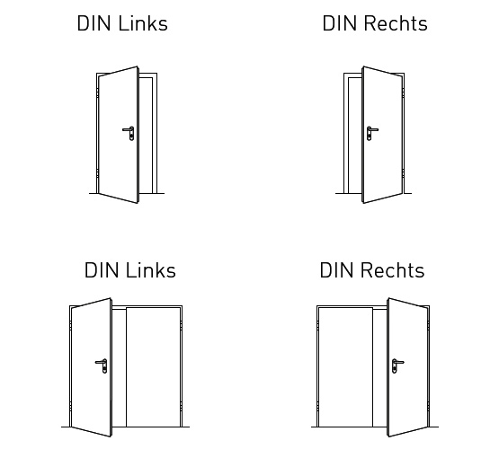 Kování: standardně 3dílné konstrukční závěsy s kuličkovými ložiskovými kroužky. Dva závěsy na křídlo (> výška BRM 2 500 mm (> LD 2 458 mm) tři závěsy) ve standardním bílém základním nátěru podobném RAL 9016; volitelně k dispozici v nerezovém provedení, jako 3D stavitelné závěsy z oceli a nerezové oceli nebo jako štíhlý 3D objektový závěs z nerezové oceli. Pružinový závěs na křídlo do BRM 1 250 x 2 250 mm (LD 1 166 x 2 208 mm). Dva zajišťovací čepy na každé dveřní křídlo. Výměnný profilový cylindrický zámek s černou kulatou pákovou sadou uloženou na pevném otočném ložisku. Profilová cylindrická vložka pro vnitřní dveře na stavbě (délka 85 mm, 35/50 mm).