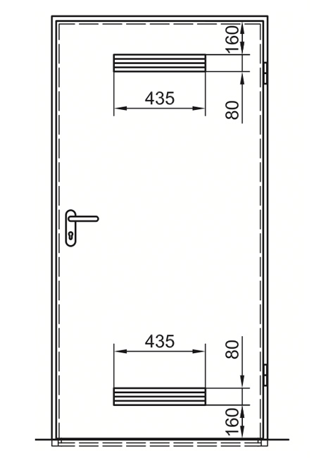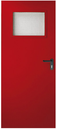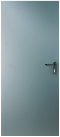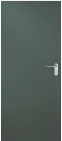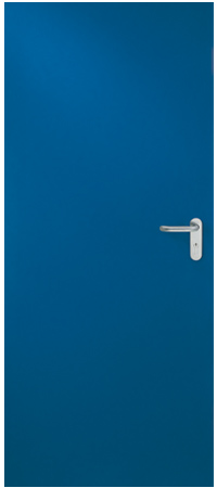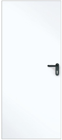 Dveřní křídlo: 40 mm silné, na třech stranách oplechované z tenkého žárově pozinkovaného plechu.
