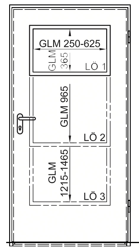 | Označení | Dveře 1+2panely | Silný falc / zapuštěný falc - dostupné tloušťky dveřních panelů | Zkušební hodnota zvukové izolace RWp | Součinitel prostupu tepla U hodnota ve W/m2K | Konstrukční rozměr mm | Možnost zasklení |