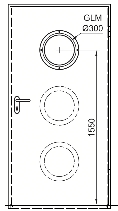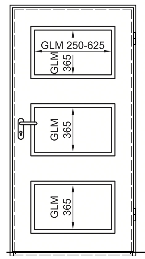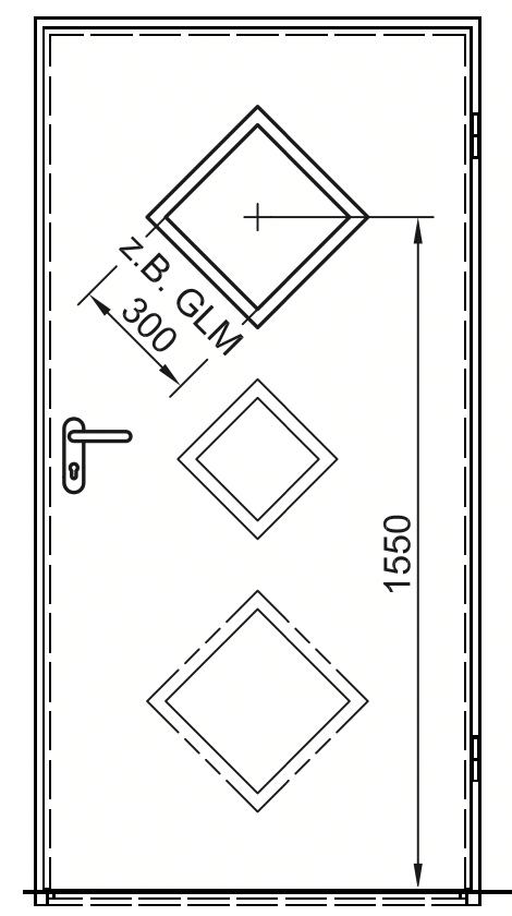 Standardní provedení skla: sklo s drátěným ornamentem (obrázky výše, světlý otvor 1-4), světlé barvy, tloušťka 6-7 mm.
