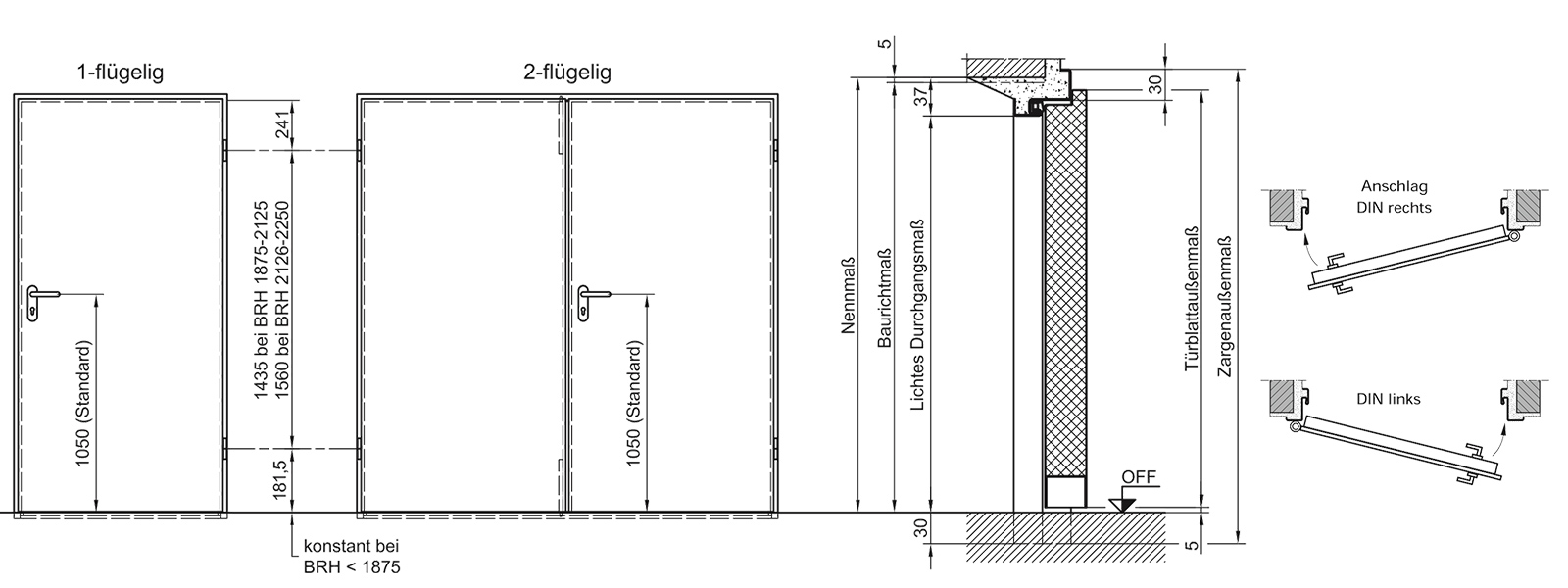 | Vnitřní dveře | Dveře 1 +2fl. | Silný falc | 26 dB1) 2) | 2,3 | min. 500 x 1600 max. 2500 x 2500 | - |