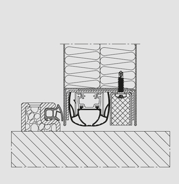 | Bezprahové, snižovatelné speciální podlahové těsnění ve standardní výbavě. Volitelně také s přídavnou dorazovou hřídelí |