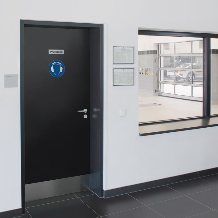 Není divu: Její dutiny jsou vyplněny speciální, vysoce účinnou zvukovou izolací. Díky masivnímu silnému falcovanému kovovému tělu a ocelovým panelům o tloušťce 1,0 mm (na přání 1,5 mm) mají vrata dostatečnou hmotnost, aby odolala i vysokým hladinám akustického tlaku. Sériově spouštěné speciální podlahové těsnění a vysoce kvalitní těsnění rámu a falcu dotvářejí obraz.