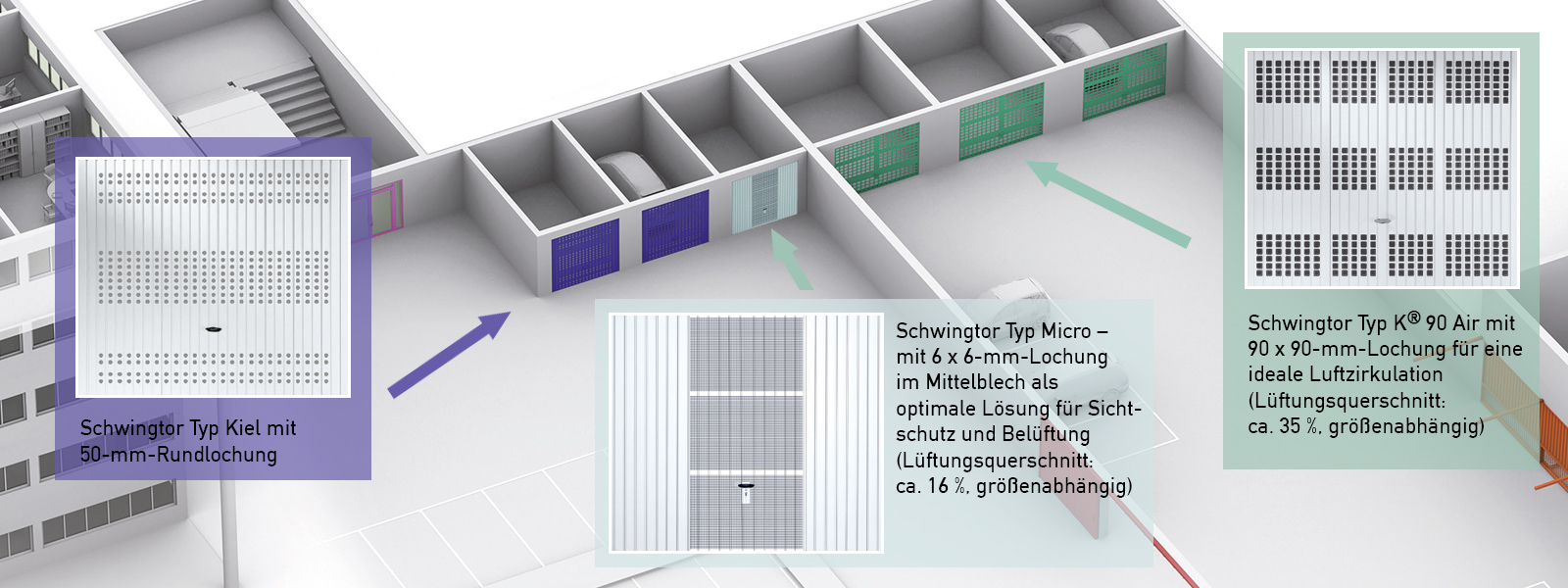 - Vysoká odolnost proti korozi díky základnímu nátěru, pozinkovaným dveřním křídlům a pozinkovaným blokovým rámům.