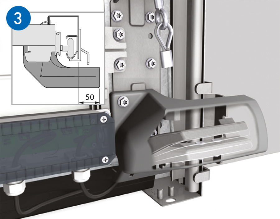 Tomu zabraňuje zařízení proti zvednutí, výrobek speciálně navržený pro lehká, elektricky ovládaná vrata. Bez zařízení proti zvednutí jsou vrata ohrožena vloupáním více než ostatní. Při instalaci zařízení proti zvednutí je potřeba o 50 mm více místa vedle kolejnice.