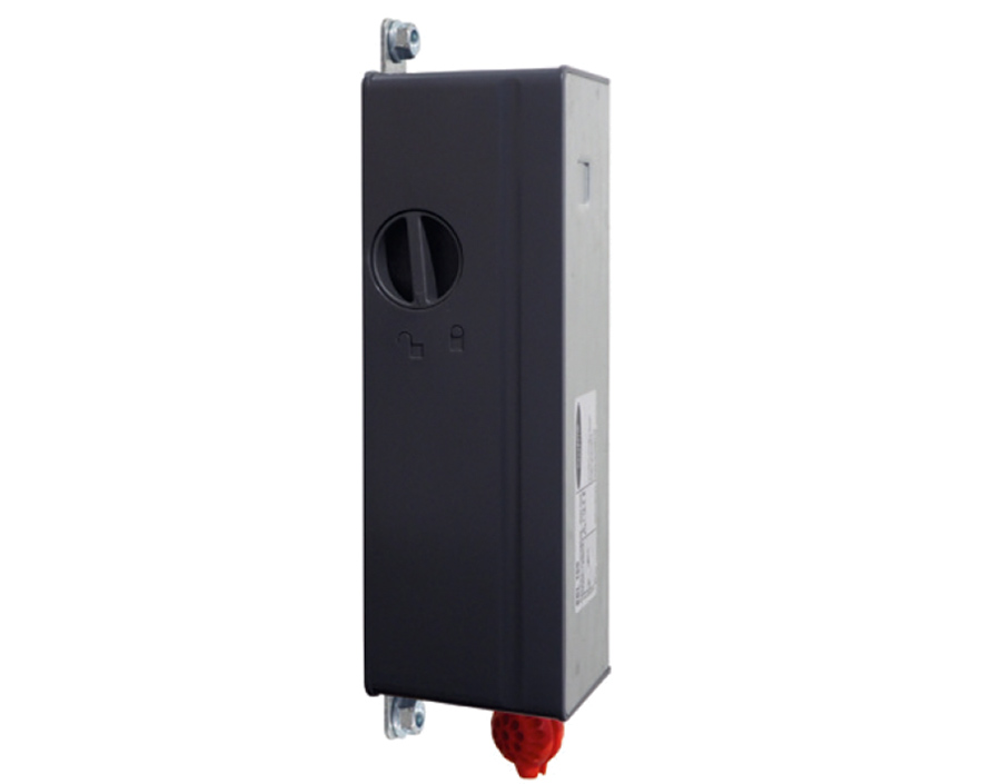 Ten se montuje na vnější stranu kolejnice a po aktivaci zámku zabrání ocelový kolík pohybu vrat směrem nahoru.