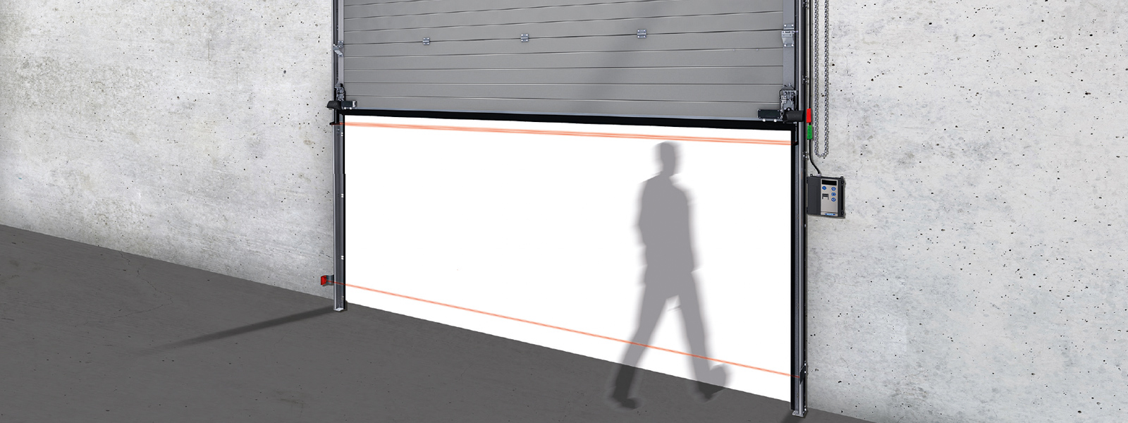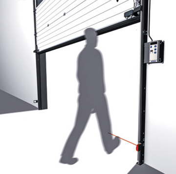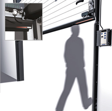 Detekce překážek s vysílačem a přijímačem je integrována do pryžového těsnicího profilu dveří. Pokud je přenos signálu přerušen osobou nebo překážkou, vrata se zastaví a couvnou. Maximální tlak při kontaktu s pryžovým profilem je 40 kg. Alternativně je k dispozici bezdotykové monitorování pomocí vodicí světelné závory.